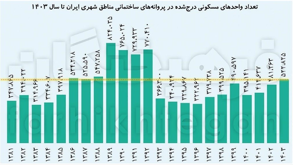 در سال 1400 تعداد واحدهای مسکونی درجشده در پروانههای ساختمانی به 395 هزار واحد، در سال 1401 به حدود 415 هزار واحد و در سال 1402 این عدد به 481 هزار واحد رسید. در نهایت و مبنی بر آخرین دادههای رسمی منتشرشده از سوی مرکز آمار، درحالیکه میزان ساخت و ساز در سال 1402 بالغ بر 481 هزار واحد مسکونی بوده، تعداد ساخت و ساز در سال 1403 با افزایش 8.6 درصدی از مرز 500 هزار واحد گذشته و به 522 هزار و 825 واحد مسکونی رسیده است. عددی که بالاترین حجم ساخت و ساز از سال 92 تا سال 1403 و یک رکوردشکنی در این حوزه محسوب میشود. آنگونه که دادهها نشان میدهد به نظر میرسد دولت درصدد پیشبرد اقداماتی است که وضعیت ساخت و ساز را در کشور ازجمله ساخت نهضت ملی مسکن تسریع پیدا کند.