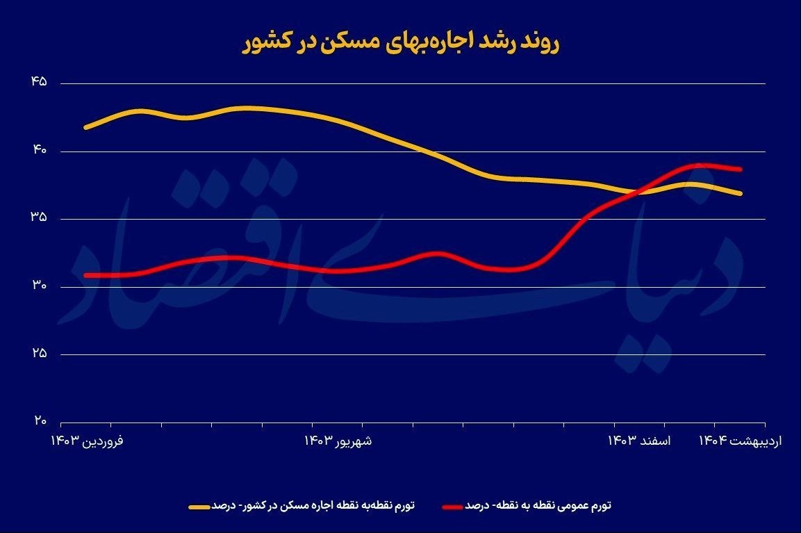 بررسیها نشان میدهد، علت اصلی کند شدن سرعت رشد اجارهبها در تهران ناشی از «ثبات قیمت مسکن» در پایتخت است که طی چند ماه گذشته با تغییرات قابلتوجهی همراه نبوده و در یک ثبات نسبی قرار داشته است. بررسیها بر اساس فایلهای ارائه شده به بازار و روایت واسطههای ملکی، نشان میدهد، عرضه فایلها تا ابتدای خرداد با کاهش چشمگیری همراه بوده و عمده موجران در انتظار ارائه املاک خود با مبالغ جدید به مستاجران در فصل جابهجایی از اواسط خرداد هستند. برآوردها بر اساس روایت واسطهها، حاکی از تغییراتی در رشد اجارهبها در تابستان است. بر اساس دادههای تورمی ابتدای خرداد کشور، تورم نقطهای در اردیبهشت نیز در مقایسه با سال قبل به عدد 36.9درصد رسید. این در حالی است که رشد نقطهای در سال گذشته بهصورت میانگین 40درصد بوده است، و این حاکی از کاهش نسبی سرعت رشد نقطهای اجارهبها نسبت به سال 1403 است. هزینه اجاره نشینی کشور از سال 97 با سرعتی نزدیک به 3 برابری به رشد متوسط سالانه 30درصدی رسید و این سرعت رشد اجارهبها در سال 1401 تا 1403 شدت گرفت و به 38درصد متوسط سالانه رسید.
