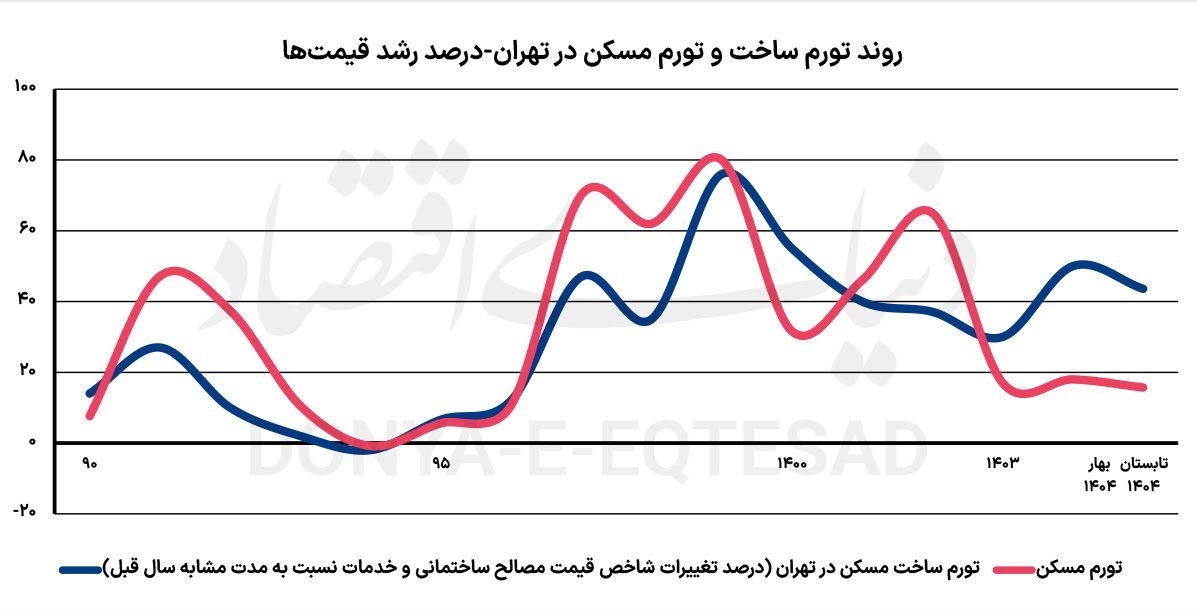 مرکز آمار شاخص قیمت نهاده‌‌‌‌‌های ساختمانی در شهر تهران برای فصل تابستان امسال را‌ برابر 173واحد اعلام کرد، به این‌ترتیب تورم نهاده‌‌‌‌‌های ساختمانی در تابستان امسال نسبت به تابستان سال‌1403 افزایشی 43.6‌درصدی را به‌ثبت رساند. حدود 30‌درصد قیمت تمام‌شده ساخت مسکن مربوط به نهاده‌‌‌‌‌های تولید شامل «مصالح ساختمانی» و «دستمزد» است و بنابراین جهش 44‌درصدی تورم نهاده‌‌‌‌‌های ساختمانی پتانسیل افزایش حداقل 14‌درصدی در قیمت تمام‌شده ساخت مسکن را دارد. این پتانسیل رشد بدون درنظر گرفتن هزینه صدور پروانه، تغییر قیمت زمین و سایر عوامل اثرگذار بر هزینه ساخت مسکن و فقط از محل مصالح و هزینه دستمزد محاسبه شده‌است.