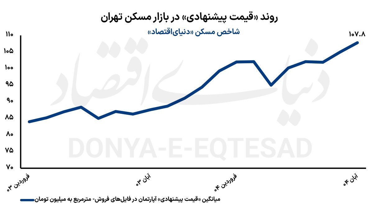 پاییز امسال که با تکان معاملاتی آغاز شد؛ در آبان ماه شدت بیشتری گرفت و نبض معاملات خرید و فروش ملک در این بازار سرعت گرفت. شاخص قیمت مسکن که ماهانه مورد بررسی قرار می‌گیرد نشان می‌دهد؛ بازار مسکن  تهران در ابتدای آذر با رشد 2.7‌درصدی در مقایسه با مهر ماه همراه بوده‌است، به‌طوری‌که میانگین «قیمت پیشنهادی» آپارتمان‌‌‌‌‌های در نوبت فروش ارائه‌شده به بازار در محله‌‌‌‌‌های منتخب مناطق 22گانه پایتخت در ابتدای آذر به 107‌میلیون و 800هزار‌تومان در هر مترمربع رسیده‌است. این رقم نسبت به ابتدای آبان که قیمت پیشنهادی آپارتمان‌‌‌‌‌های میان‌‌‌‌‌متراژ 105‌میلیون‌تومان در هر مترمربع بود، رشد مثبت را نشان می‌دهد. این شاخص برای واحدهای مسکونی میان‌‌‌‌‌متراژ با مساحت 84 مترمربعی با متوسط سن بنای 8‌سال‌ محاسبه می‌شود، همچنین تورم نقطه‌به‌نقطه معاملات آپارتمان‌‌‌‌‌های تهران نشان می‌دهد، متوسط «قیمت پیشنهادی» فروش آپارتمان در ابتدای آذر ماه نسبت به مدت مشابه در سال‌گذشته 23‌درصد افزایش ‌یافته‌است. البته نکته قابل‌توجه در بررسی تورم ماهانه این است که سرعت رشد ماهانه قیمت مسکن در آبان نسبت به میزان رشد در مهرماه که نزدیک به 3درصد بوده، کاهش ‌یافته‌ و حدود  0.3 واحد‌درصد کمتر شده‌است.