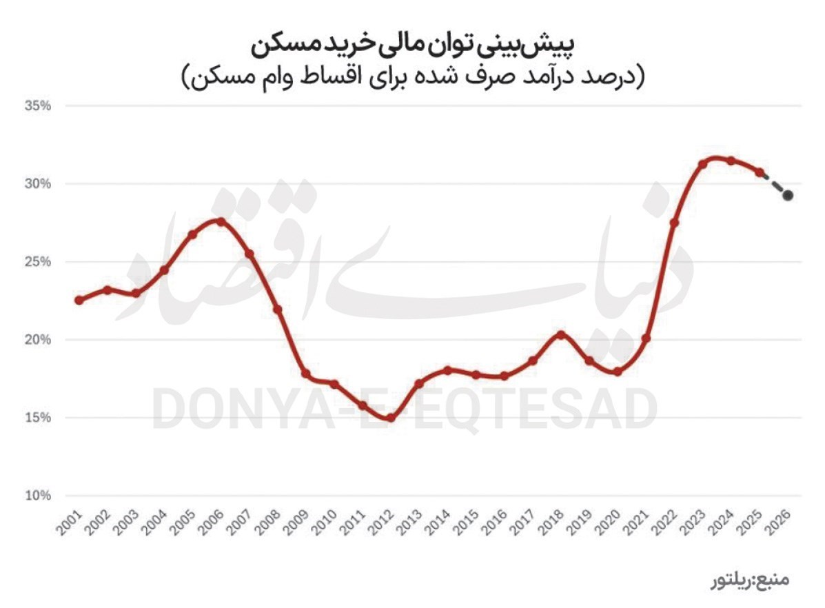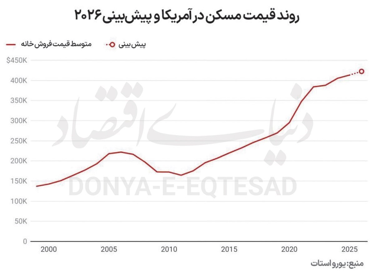 براساس گزارشی از وبسایت مشاور املاک آمریکایی ریلتور، نرخ وام مسکن آمریکا در سالآینده همچنان بالای 6درصد باقی خواهد ماند، اما قدرت خرید خانه بهطور محدودی بهبود خواهد یافت، زیرا برای نخستینبار از سال2022، پرداخت ماهانه معمولی اقساط تسهیلات خرید مسکن کمتر از 30درصد درآمد یک خانوار خواهد بود. این پیشبینی توسط تیم تحقیقات اقتصادی وبسایت ریلتور در گزارش بازار مسکن 2026 ارائه شدهاست. بر اساس این پیشبینی، نرخ وام مسکن در طول سال2026 بهطور میانگین 6.3درصد خواهد بود؛ که اندکی بهتر از میانگین سالانه 6.6درصد پیشبینیشده برای سال2025 است، اما همچنان بسیار بالاتر از میانگین تاریخی 4درصد بین سالهای 2013 تا 2019 بهشمار میرود. در سطح ملی، قیمت خانهها تا پایان سالآینده حدود 2.2درصد افزایش خواهد یافت، پس از آنکه در سال2025 حدود 2درصد رشد کردهبود، با اینحال پیشبینی میشود درآمدها و تورم عمومی کلی همچنان سریعتر از رشد قیمت مسکن افزایش یابند و همین موضوع باعث افزایش اندک قدرت خرید خواهدشد.