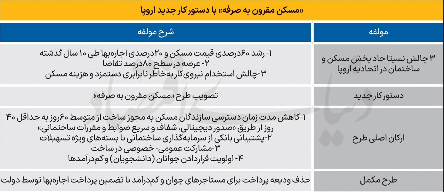 این وضعیت، چالشهای گستردهای در زمینه جذب نیروی کار، انعطافپذیری بازار کار، انسجام اجتماعی و حتی توسعه شهری و منطقهای ایجاد کردهاست. چنین بحران پیچیدهای نیازمند یک پاسخ هماهنگ فراتر از سطح ملی است، زیرا مسائل مربوط به مسکن تنها محدود به یک کشور یا شهر نیست، بلکه تاثیرات آن فراتر از مرزها احساس میشود. در پاسخ به این بحران، کمیسیون اروپا در 16 دسامبر 2025 اولین «طرح جدید مسکن مقرونبهصرفه اروپایی» را ارائه کرد؛ طرحی که با محور قراردادن همکاری میان سطوح مختلف حکمرانی، نوآوری در ساختوساز، مشارکت سرمایهگذاری عمومی و خصوصی و حمایت از گروههای آسیبپذیر، یک چارچوب جامع برای مقابله با بحران مسکن در سراسر اتحادیه فراهم میآورد. در عمل، این بهمعنای آن است که اتحادیه و کشورهای عضو باید حجم قابلتوجهی از مسکن جدید را هر سال تولید کنند. برآوردهای رسمی نشان میدهد؛ اروپا برای پاسخ به تقاضای فعلی باید بیش از دومیلیون خانه در سال بسازد، یعنی حدود 650هزار واحد بیشتر از «وضعیت موجود» که سالانه حدود 1.6میلیون واحد ساخته میشود. این امر نیاز به سرمایهگذاری حدود 153میلیارد یورو در سال دارد تا نیاز واقعی بازار تامین شود.