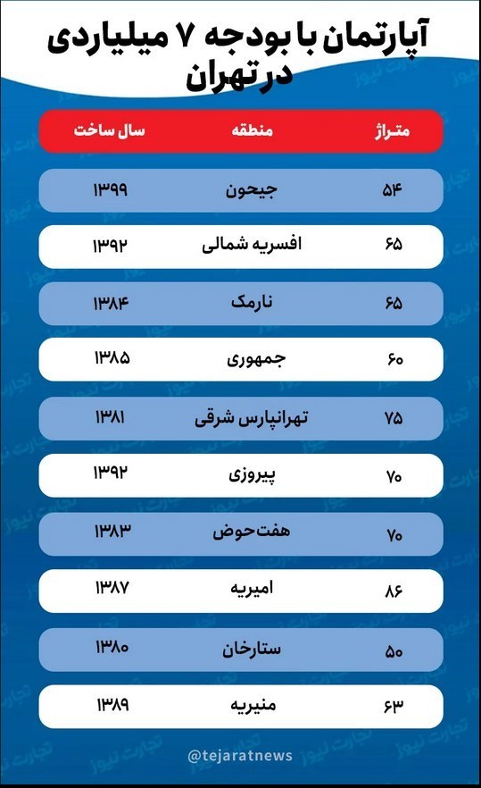 به گزارش پایگاه خبری «عصرساختمان» به نقل از تجارت نیوز، با افزایش قیمت مسکن در سال‌های اخیر، قدرت خرید خانه برای بسیاری از خانوارها کم و محدود شده است؛ با این حال، بررسی بازار املاک نشان می‌دهد کسانی که بودجه‌ای حدود 7 میلیارد تومان دارند، هنوز می‌توانند گزینه‌های متنوعی در تهران پیدا کنند.